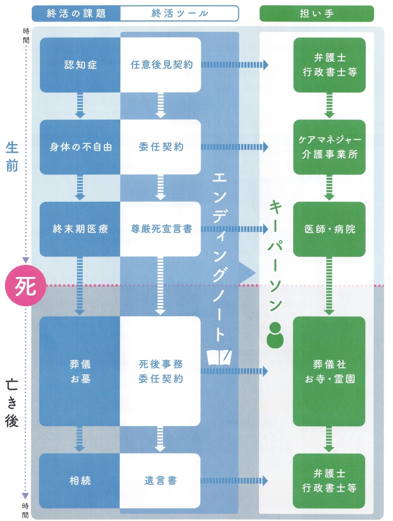 頼れる親族がいない場合は、終活5点ツールの「委任・任意後見契約」「死後事務委任契約」「遺言書」「尊厳死宣言公正証書」「エンディングノート」をすべて準備しておくことをお勧めいたします。
