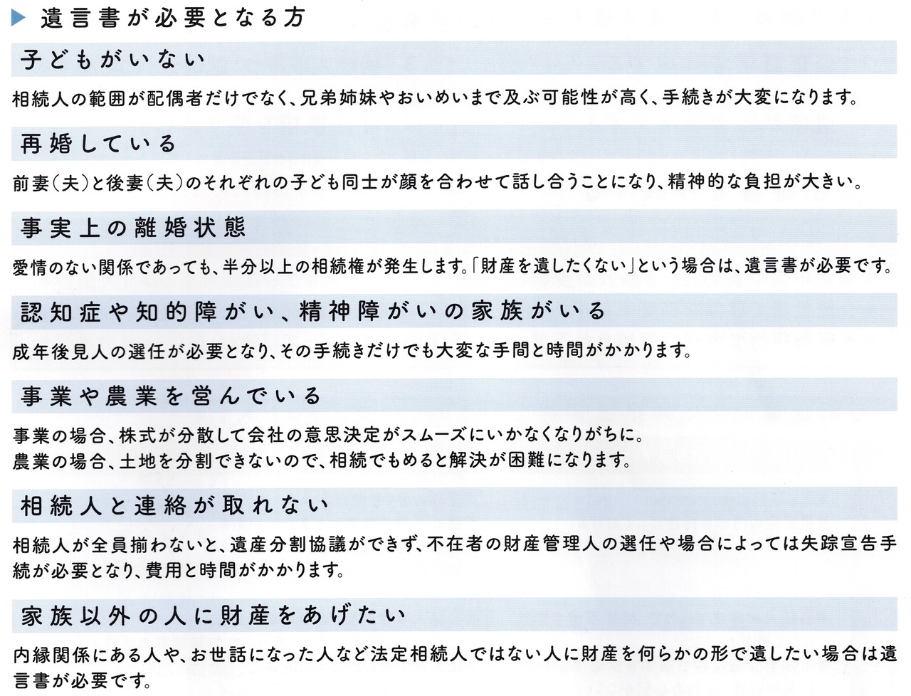 遺言書を作成することで、あなたの想いが実現できるだけでなく、家族や大切な人との絆を守る切り札になります。また、複雑で面倒な相続手続きをスムーズに進めることができるため、円満円滑な相続を望むのであれば、きちんとした遺言書を作成しておきましょう。