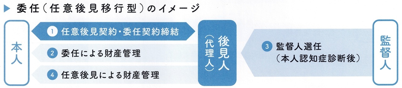 委任契約と任意後見契約をセットで契約することで、体が不自由でも判断能力がある間は委任契約により財産管理を行い、もし認知症になってしまった場合は任意後見契約に切り替えて、任意後見人が財産管理を行います。